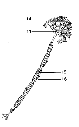 <top> Making Connections The brain and the rest of the nervous system are composed of many different types of cells, but the primary functional unit is a cell called the neuron. All sensations, movements, thoughts, memories, and feelings are the result of signals that pass through neurons. Neurons consist of three parts. The cell body (13) contains the nucleus, where most of the molecules that the neuron needs to survive and function are manufactured. Dendrites (14) extend out from the cell body like the branches of a tree and receive messages from other nerve cells. Signals then pass from the dendrites through the cell body and may travel away from the cell body down an axon (15) to another neuron, a muscle cell, or cells in some other organ. The neuron is usually surrounded by many support cells. Some types of cells wrap around the axon to form an insulating sheath (16). This sheath can include a fatty molecule called myelin, which provides insulation for the axon and helps nerve signals travel faster and farther. Axons may be very short, such as those that carry signals from one cell in the cortex to another cell less than a hair’s width away. Or axons may be very long, such as those that carry messages from the brain all the way down the spinal cord.